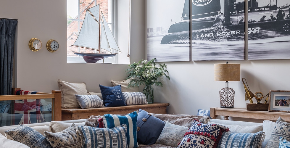 “With the chapel being so close to the water’s edge, I was keen to inject a New England flavour and introduced a palette of coastal hues, including greys and blues, to reflect the nautical surroundings,” said Mandy. “I then added the occasional pop of red for impact. The key was going bold and not being afraid of choosing large pieces of furniture and artwork, such as the triptych, to give the interior plenty of character and style.”